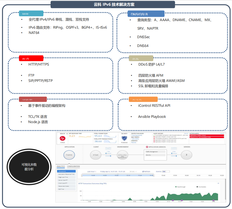 全球范圍內(nèi)支持無線和互聯(lián)網(wǎng)的設(shè)備日益增多,導致 IPv4 地址快速耗盡。與此同時,IPv6 的普及速度比預計的要慢。服務(wù)提供商需要一款解決方案,幫助他們應(yīng)對 IPv4 地址耗盡的問題,并基于無縫遷移到 IPv6 以實現(xiàn)網(wǎng)絡(luò)優(yōu)化。通過提供大量的IP地址轉(zhuǎn)換、快速的NAT 轉(zhuǎn)換率、高吞吐率能力和高速的日志審計功能實現(xiàn)運營商級平臺的可擴展性。