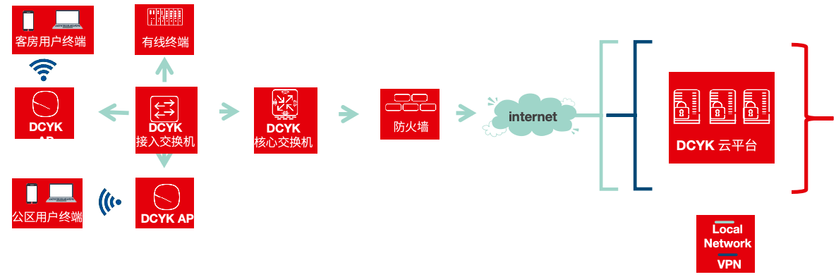 通過DCYK酒店綜合云管理平臺,用戶可以使用智能零接觸配置讓用戶的網(wǎng)絡在幾分鐘內(nèi)正常運行。